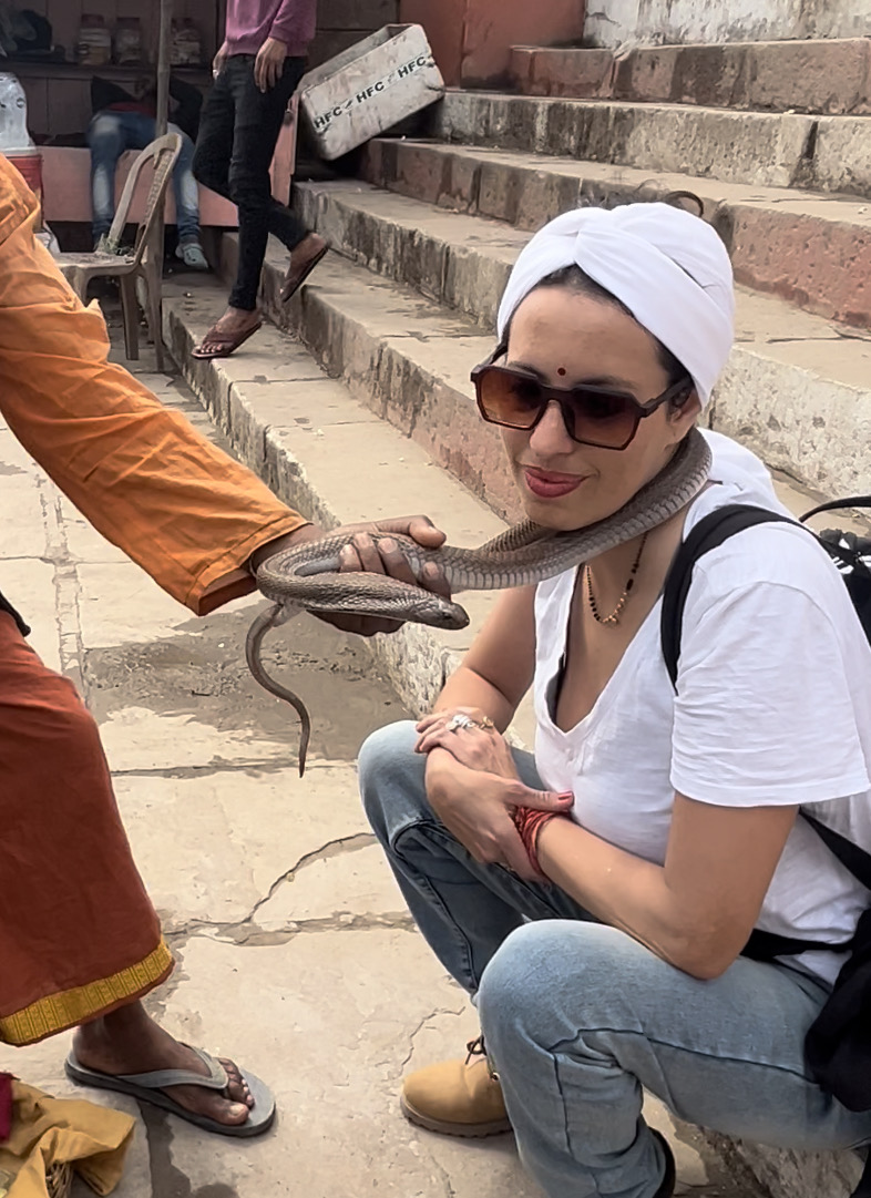 Ao longo dos anos, participei de retiros e vivências como  Vipassana no Nepal e na Bélgica, druidas na Espanha (Valência), sete raios no Brasil, e caminhos de sagrado feminino e xamanismo nos mistérios do sangue da mulher. Viajei para formações e estudos em Nepal, Índia, Turquia, Espanha e Brasil.